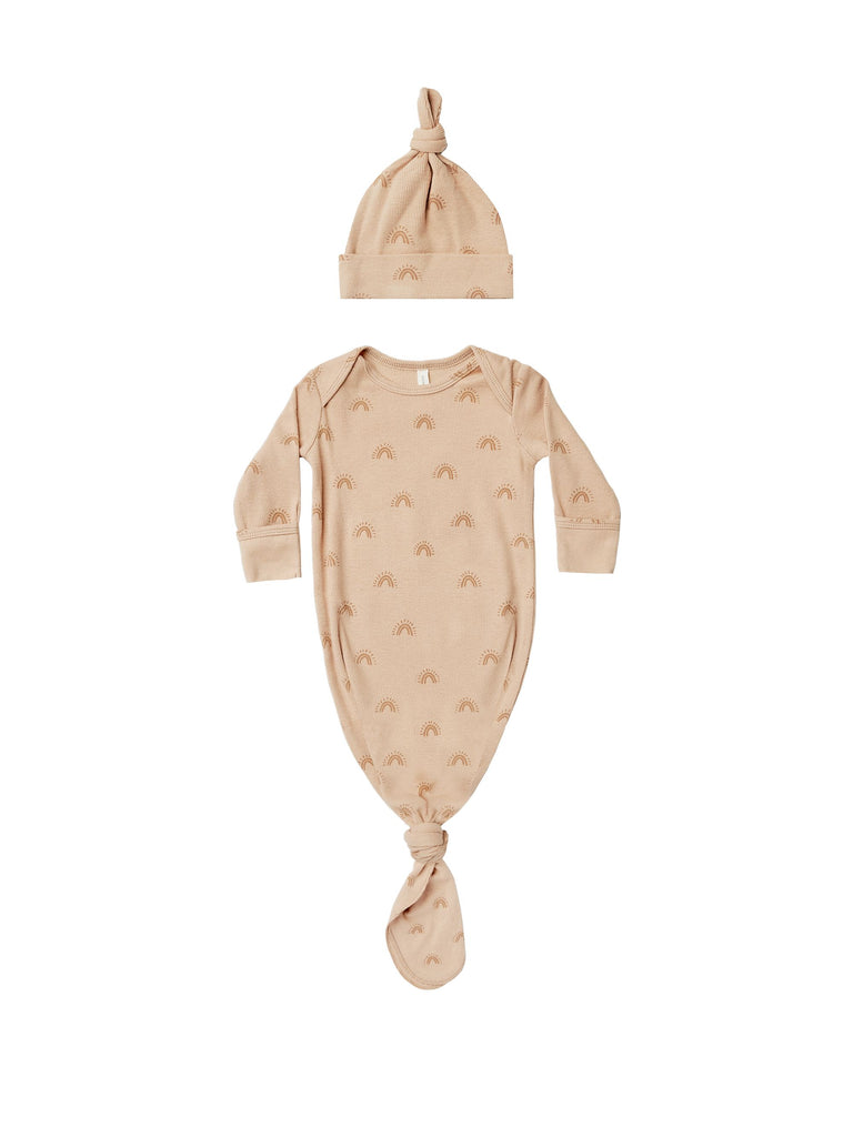Quincy Mae Knotted Baby Gown & Hat Set | Rainbows