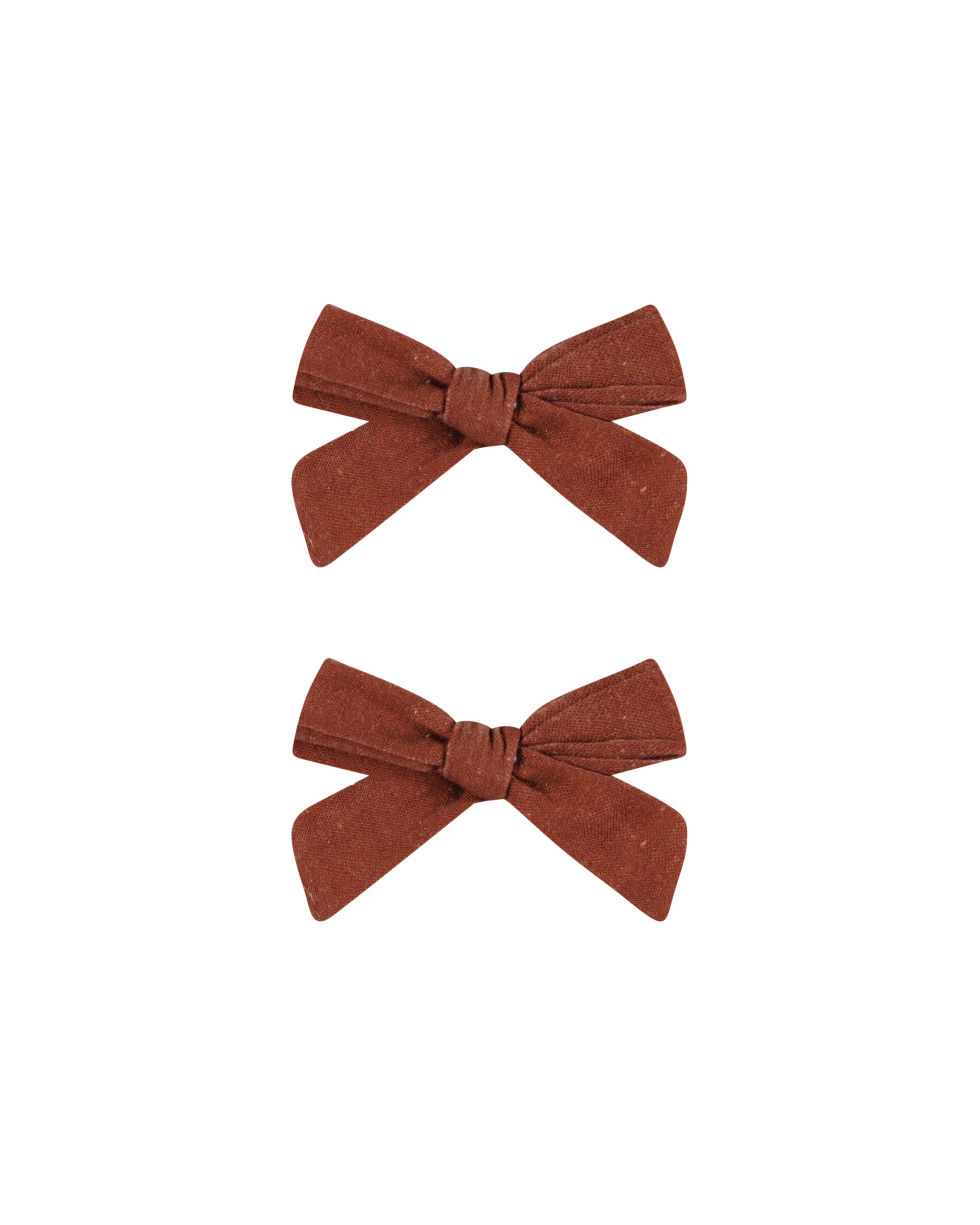 Add a stylish touch to your little one’s outfit with this set of two brick-colored bows. Designed for comfort and durability, these bows are perfect for everyday wear or special occasions, providing a secure fit without compromising on style. Their versatile brick hue complements a wide range of colors, making them an essential accessory for any child’s wardrobe.