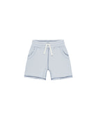 An everyday short featuring a classic elastic waistband, durable drawstrings, side pockets, and a raw edge.