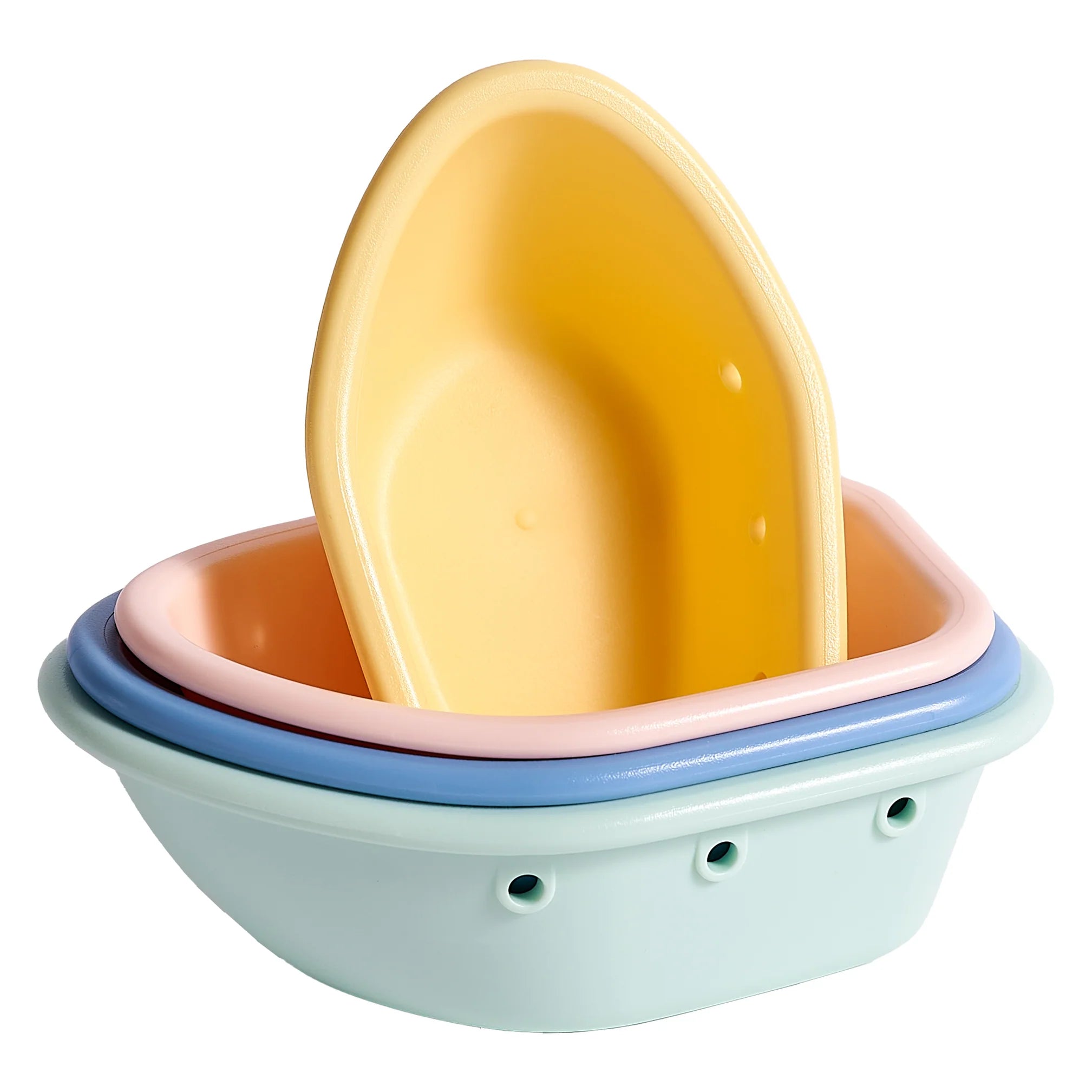 Turn water play into learning the healthy and natural way with our green sprouts® Sprout Ware® Floating Boats. Our toys are made from our innovative Sprout Ware® plant-plastic, a non-toxic, lightweight, durable, and recyclable material without PVC and hormone disrupters like BPA for baby’s health and safety. Perfect during bath time, pool, or beach time, our set of four Floating Boats in different sizes and colors helps baby learn to stack inside or on top of each other to develop concentration and thinking skills. Patterned holes at the top of each boat make scooping and sprinkling water or sand fun! These plant-plastic baby bath toys are designed with love for little ones 6 months and older.