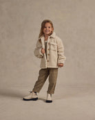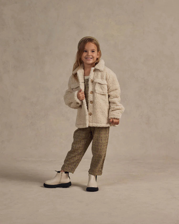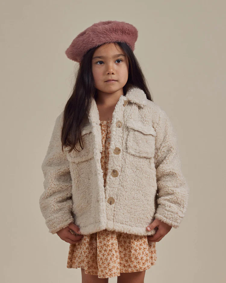 Soft shearling chore jacket with button-up front to keep your little one warm and stylish.