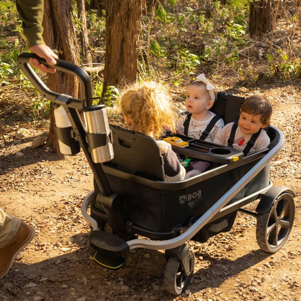 Whether hitting the trail or cruising the beach, the Bob Renegade Wagon is the perfect sidekick for adventures of all sizes. Made to get up and go, it folds and unfolds with one hand and three simple steps! Spacious design fits 3 kids and all the little extras that make family outings more fun. Large XtraMile™ tires are ready for any terrain & SmoothShox™ suspension keeps riders comfortable from road to trail and everywhere in-between. Don’t let a little sun or rain ruin your fun! Two UPF 50+ Canopies keep your little ones cozy and covered.