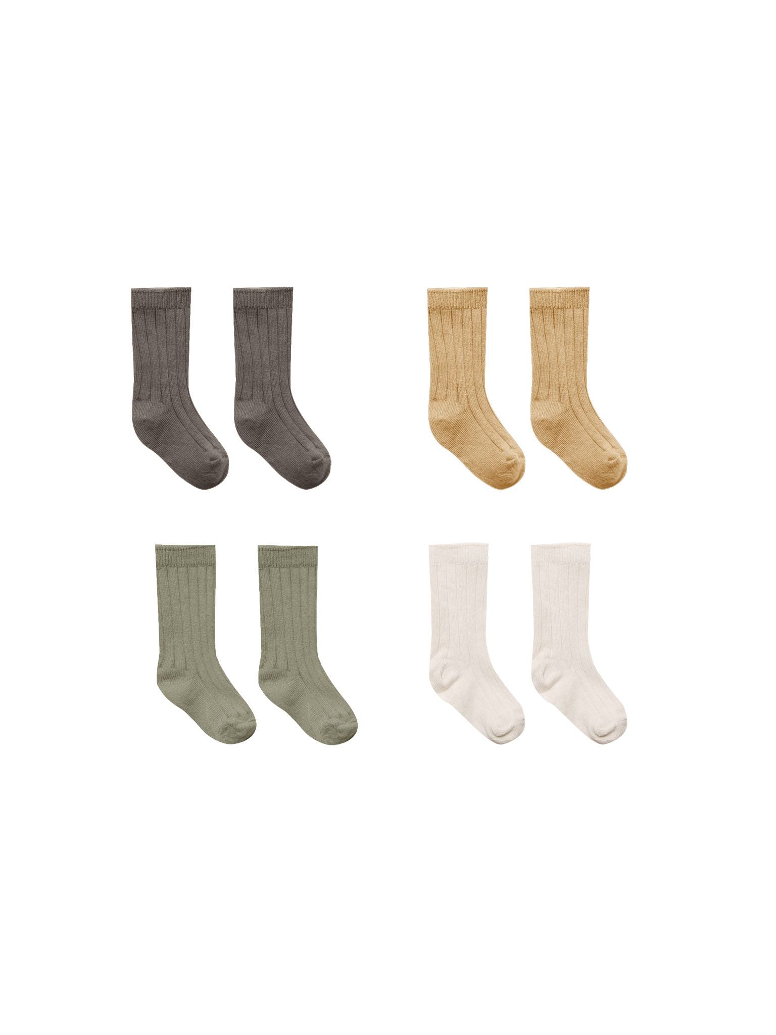 Quincy Mae Ribbed Sock Set | Fern, Charcoal, Natural, Honey