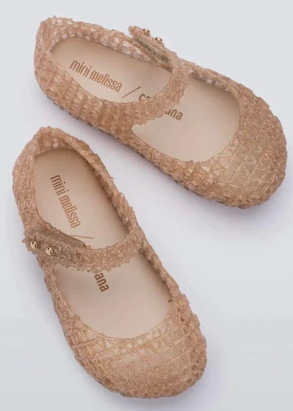 Mini Melissa Campana Papel Beige Glitter Flat