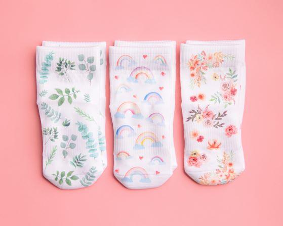- 100% skin-safe tested silicone dots on inside cuff gently hold socks in place