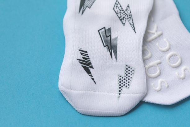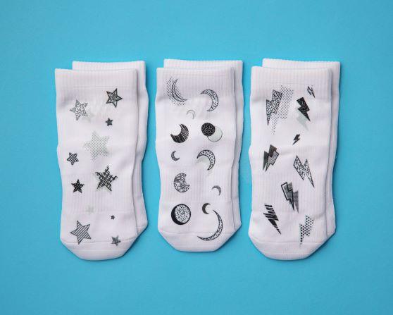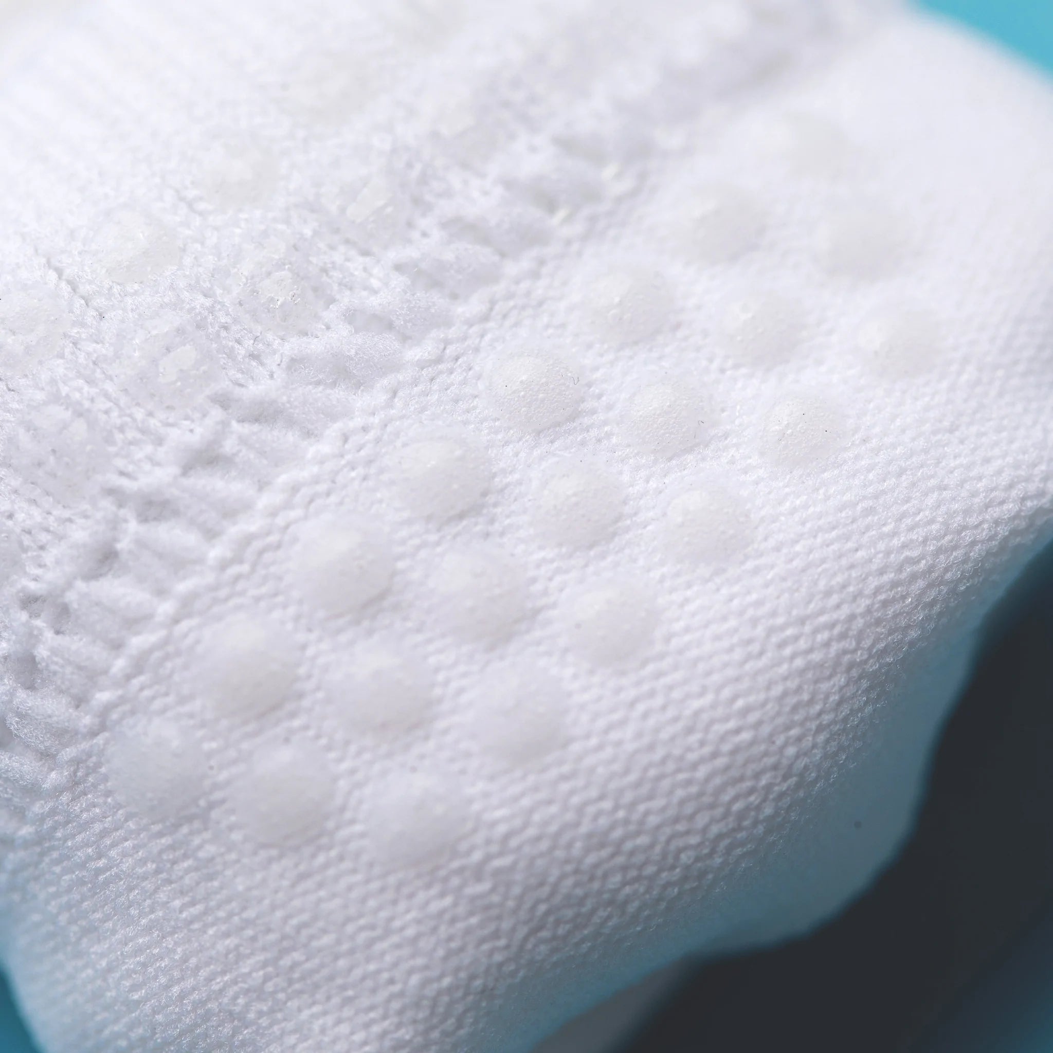 - 100% skin-safe tested silicone dots on inside cuff gently hold socks in place.