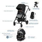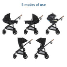 • Choose between 5 modes of stroller use: parent-facing car seat caddy, reversible carriage, and reversible stroller