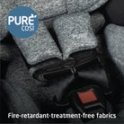 • Car seat features PureCosi fabrics made without wool or added fire-retardant treatment