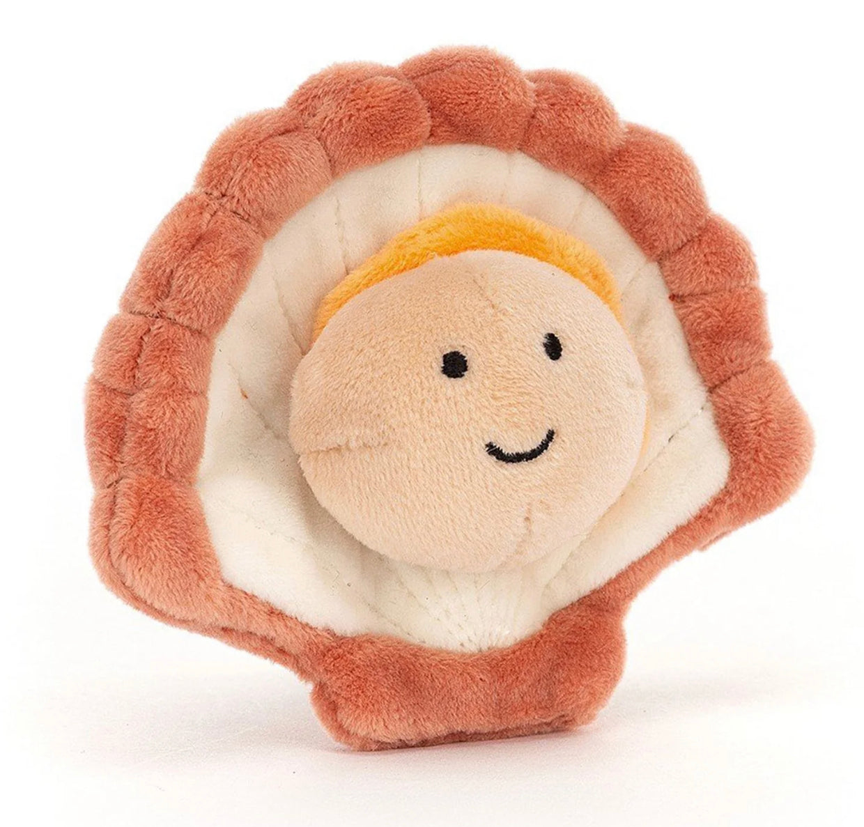 Sensational Seafood Scallop is a bit of an ocean diva. With a peachy smile, daffodil frill and sumptuous stitchy coral shell, this clam is clamouring to get onstage! Divinely briny and ready to rock the pool!