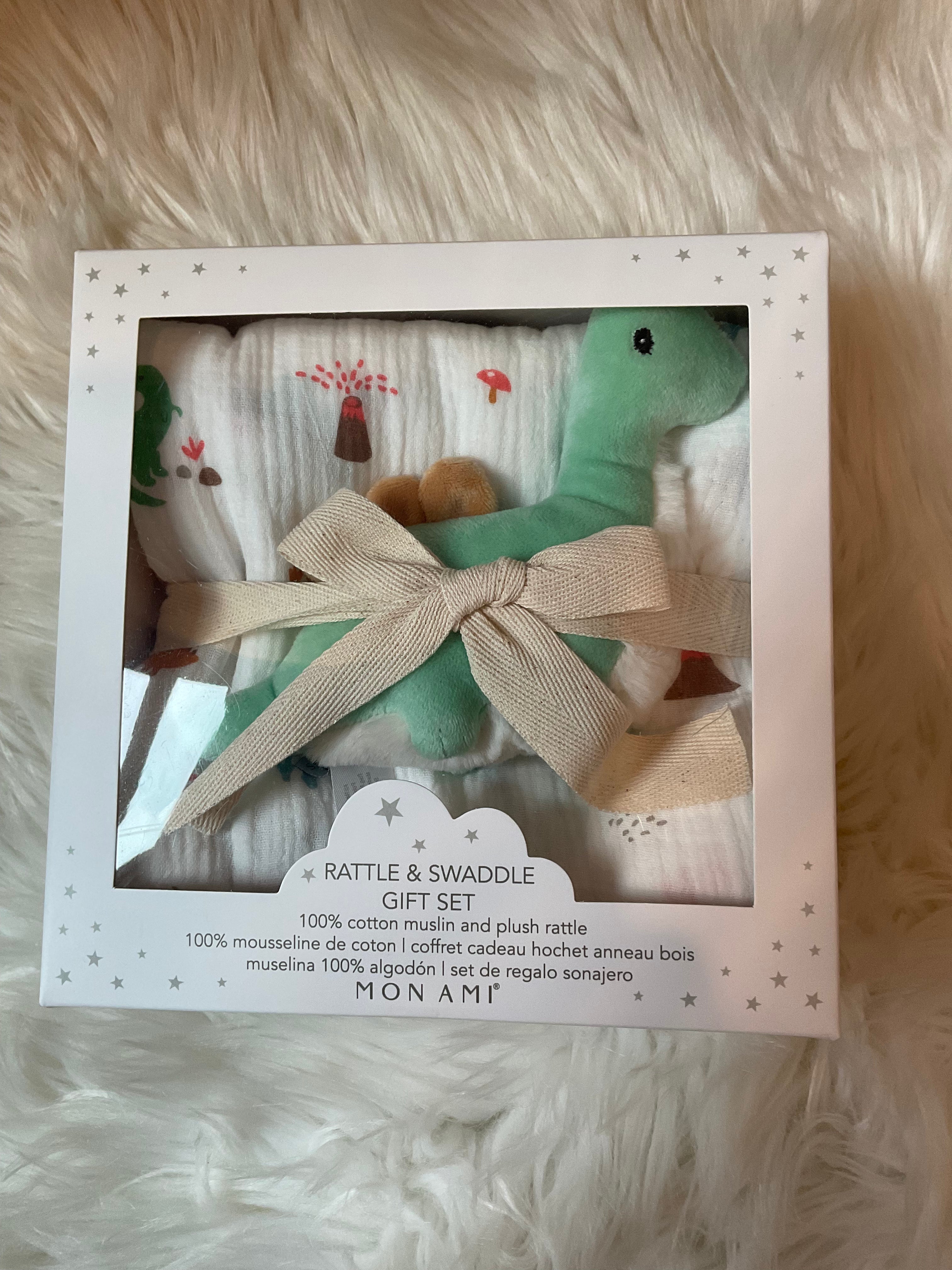 SWADDLE AND RATTLE GIFT SET