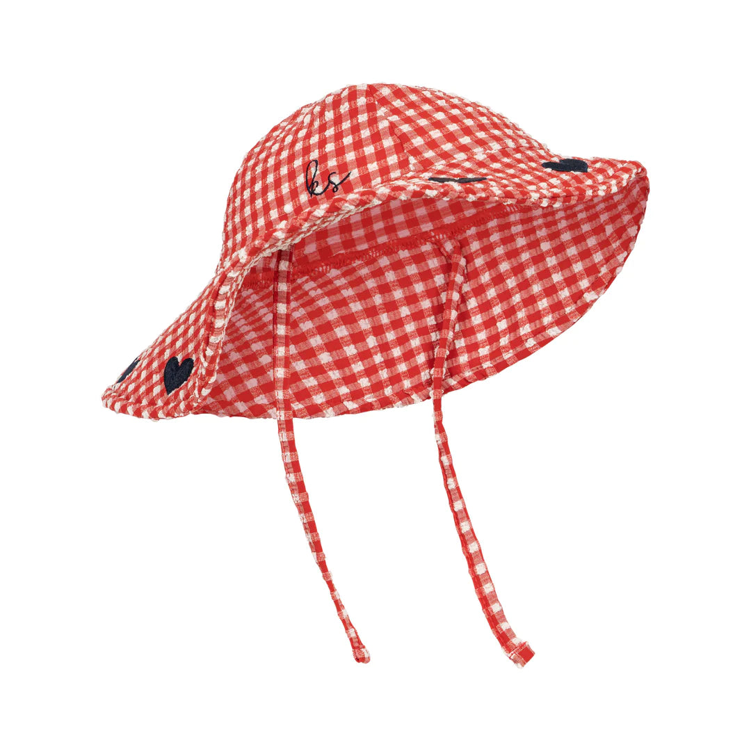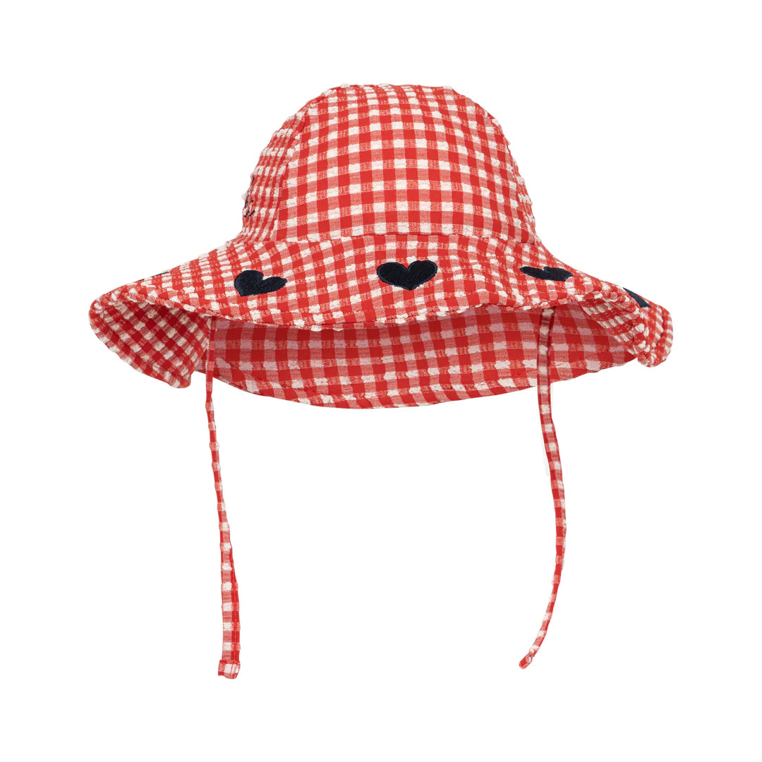Swim hat made in 48 percent recycled polyester, 44 percent polyamide and 8 percent elastane. Designed with a large brim, ties and embroidery. The stretchy fabric protects against the sun’s UV rays with the highest ultraviolet protection factor, UPF 50+.