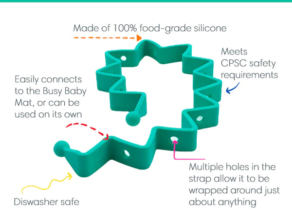 Keep your baby's favorite toy or blanket within reach and off the ground with this genius tether. You'll want one for your stroller, car seat, wagon, and Busy Baby Mat!