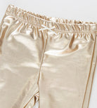 Make a shimmering statement in our Girls Lame Leggings. An elastic waist with faux bow detail allows for ease of movement. Available in Light Gold and Silver. These look fabulous under any of our dresses or skirts or simply paired with a t-shirt.