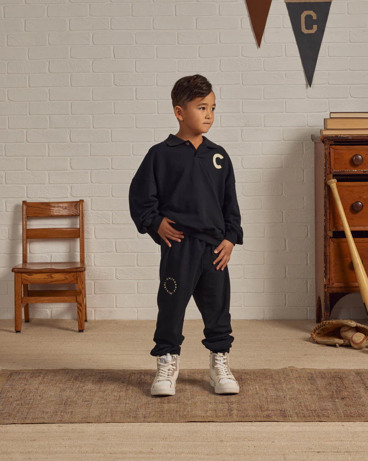Made from a super soft fabric, this pair of joggers will keep your little one warm and stylish while staying active. Featuring an elastic waistband, drawstring and elastic leg openings. Pairs perfectly with our 'Collared Sweatshirt.'