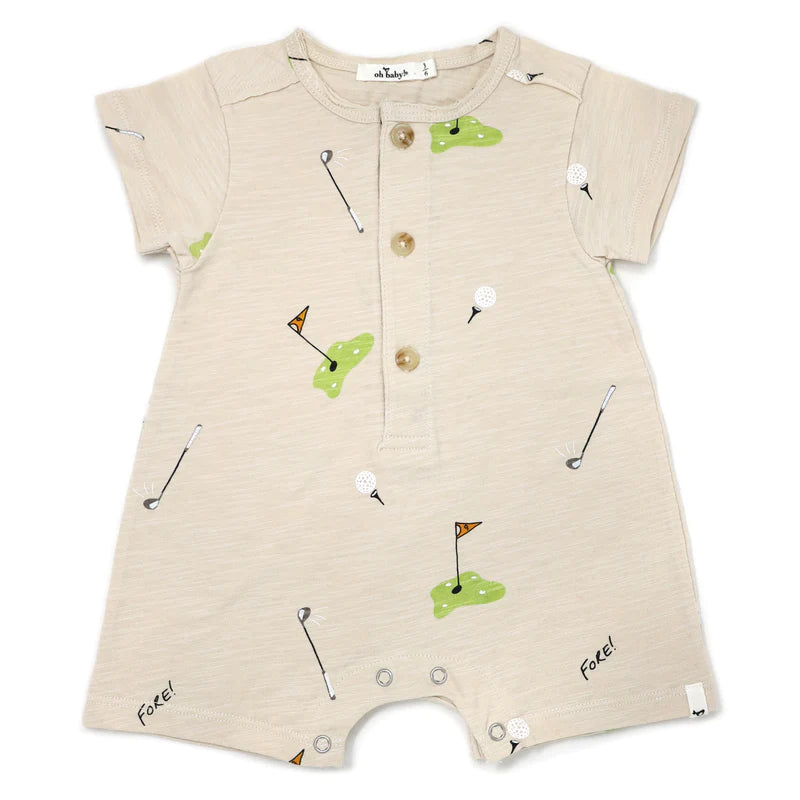 Short Sleeve Romper - Golf Print - Oat