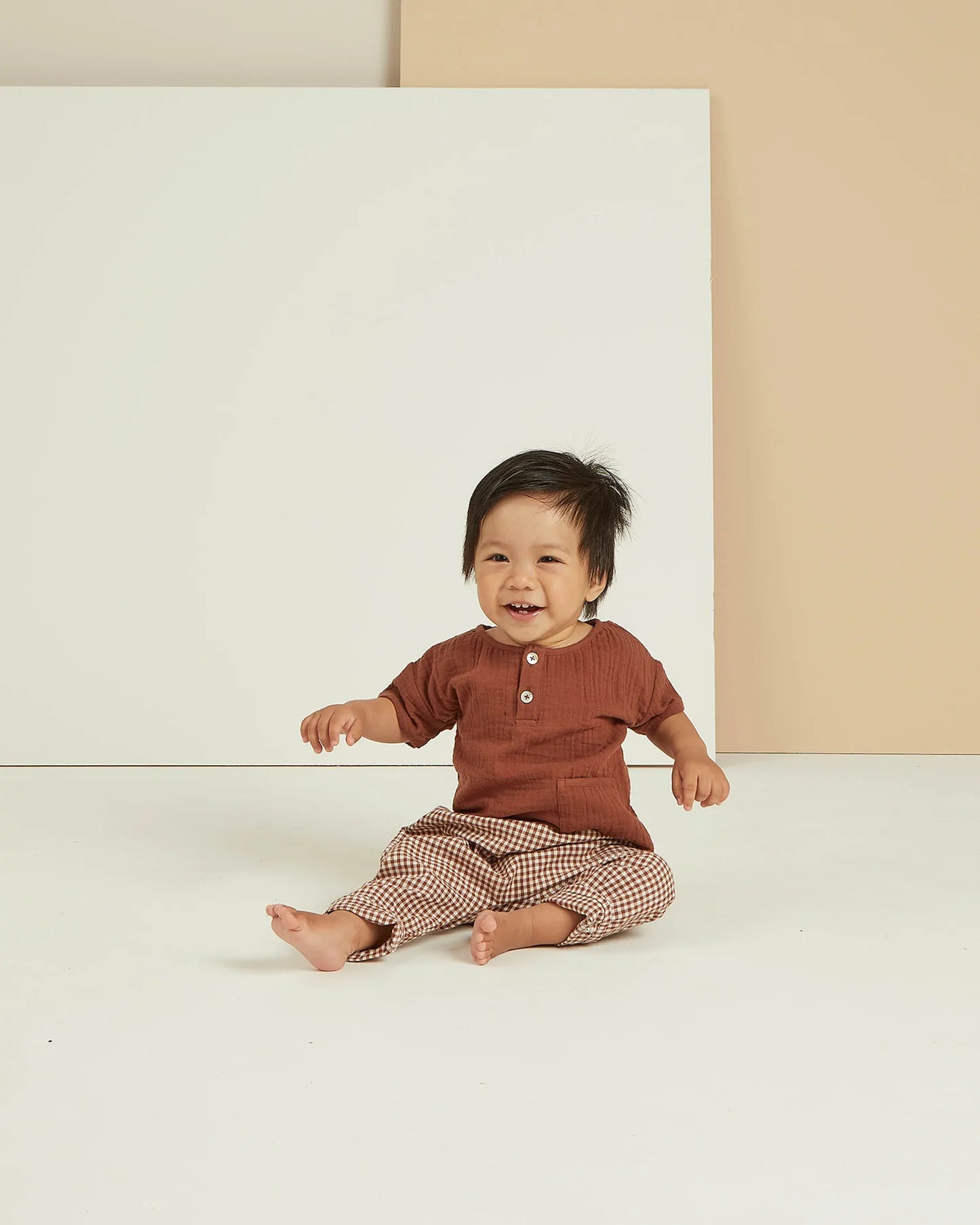 Rylee + Cru Woven Henley Tee | Redwood