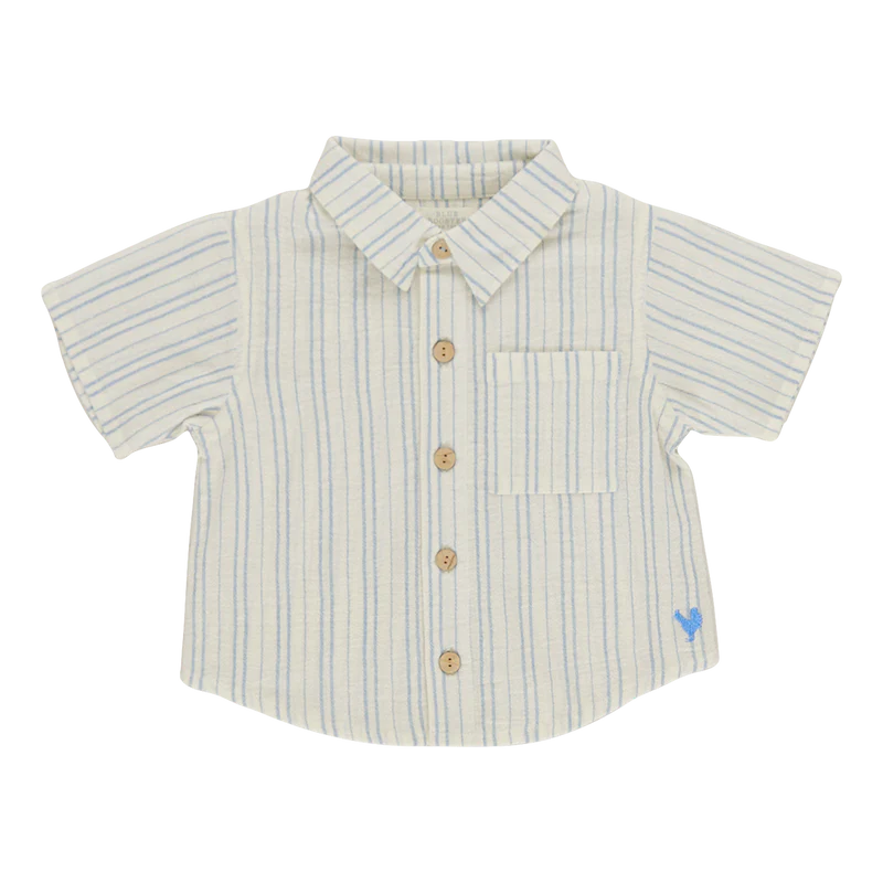 Classic Stripes! Thin and medium sky blue ribbons complement a sturdy white cotton gauze on our collection classic Baby Boys Jack Shirt in Riviera Stripe. This short sleeve, collared staple features a roomy pattern on pattern front chest pocket, a faux coconut button front closure and our signature bright blue thread detail on the top button. You'll find our chic Riviera Stripe woven throughout our Spring Collection making both sibling and Mommy & Me looks easy to achieve.