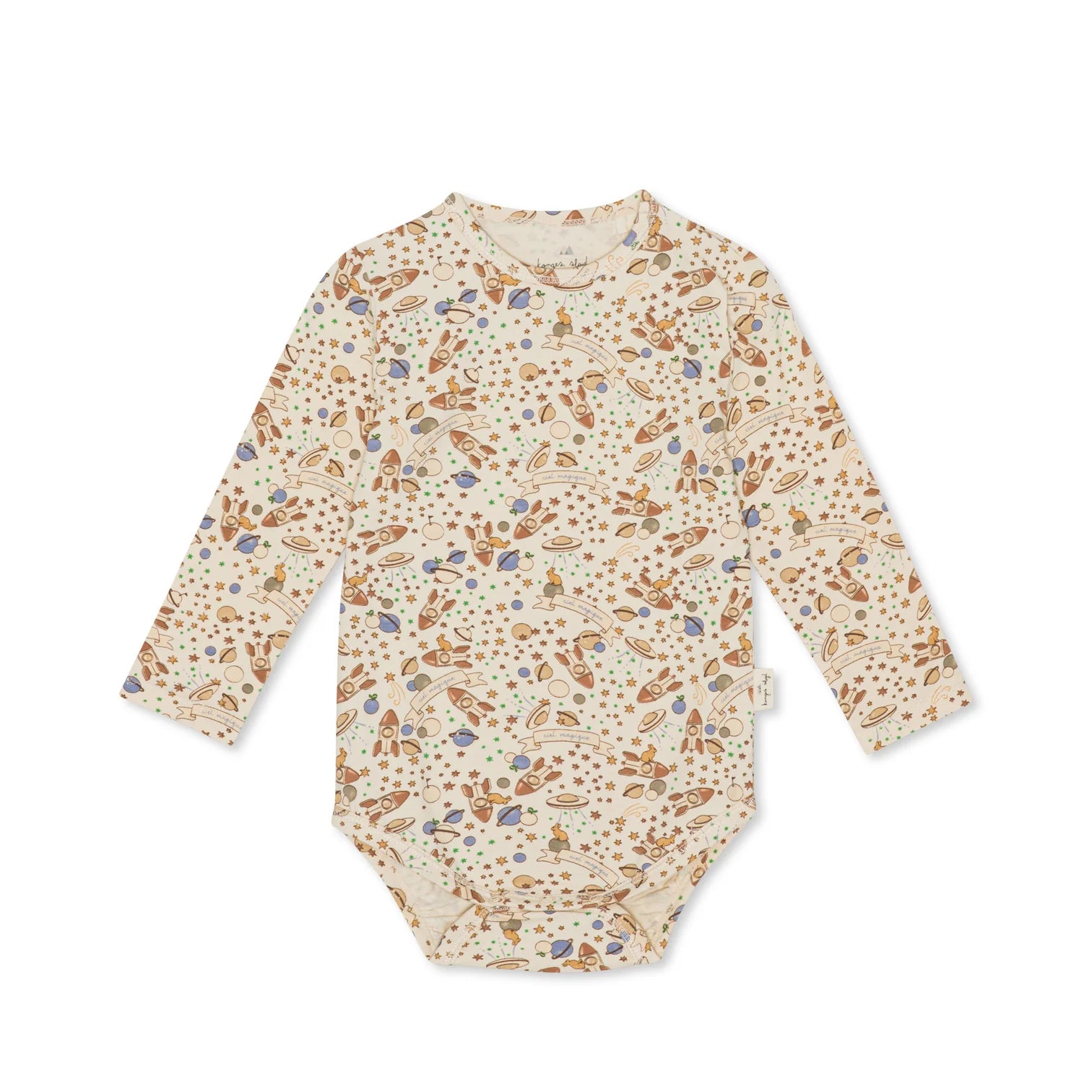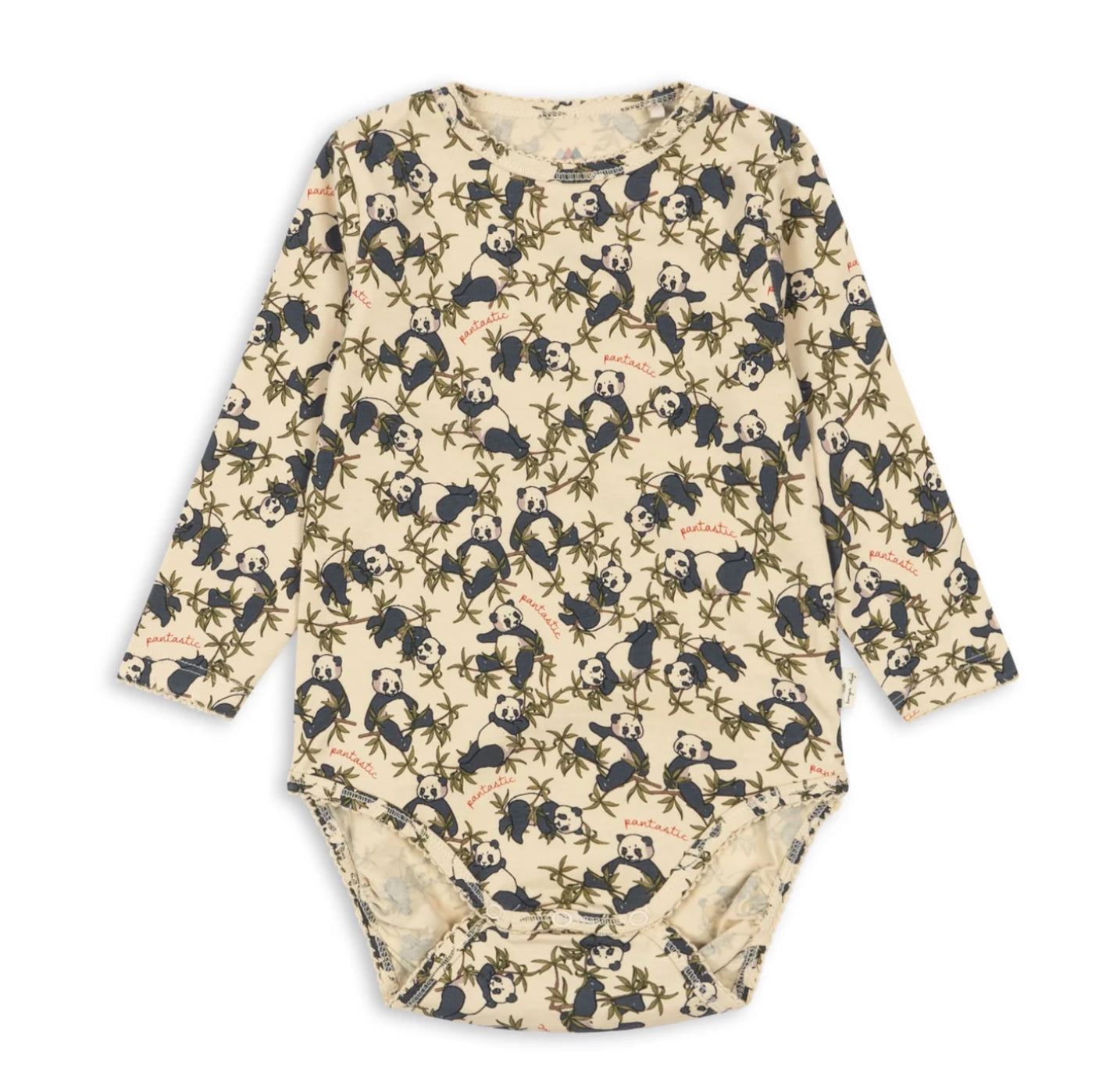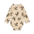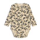 Soft long-sleeved body made in 95 percent organic cotton and 5 percent elastane, with a hint of stretch. Features scallop edges. Designed with snap buttons at the shoulder and crotch for easy dressing.