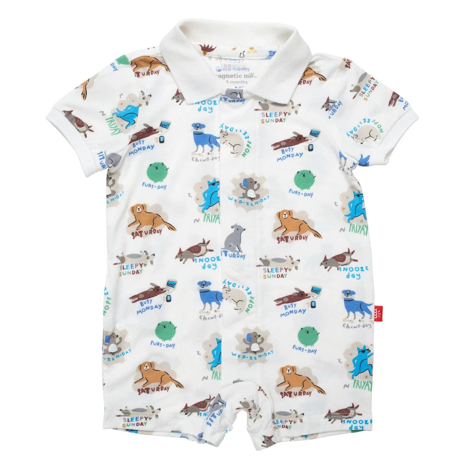with a swift click of our signature magnets, our short sleeve romper opens and closes oh-so easily down the front. a must-have for when it's warm out, silky soft modal and thoughtful design give it the comfiest fit.