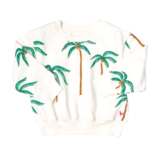 Pink Chicken Girls Organic Sweatshirt - Cream Palm Trees