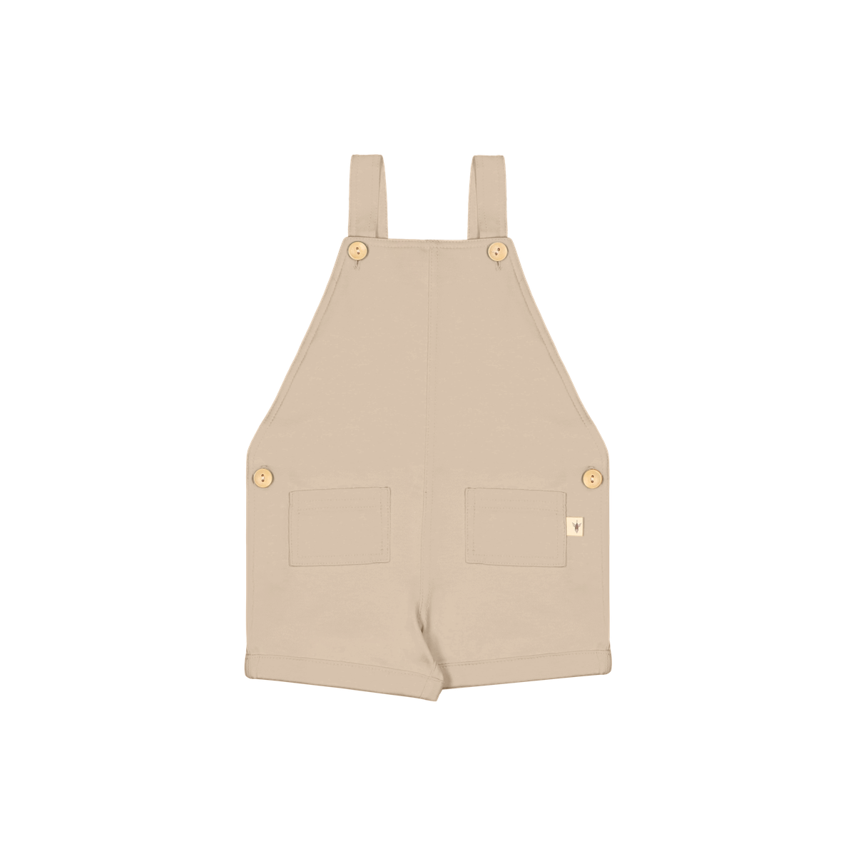 The comfy overall with short-length legs has wooden adjustable button straps and front patch pockets. It’s a garment that gives your little one enough wiggle room to move and play.