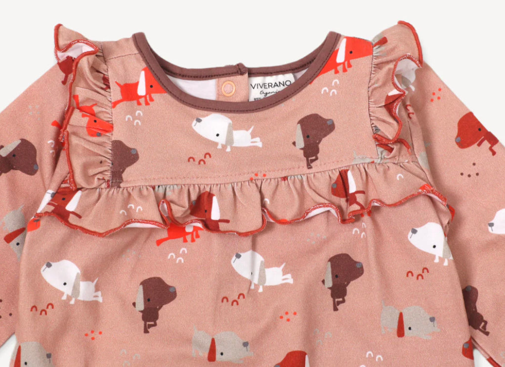 Viverano Organics Yoga Dog Baby Girl Ruffle Jumpsuit