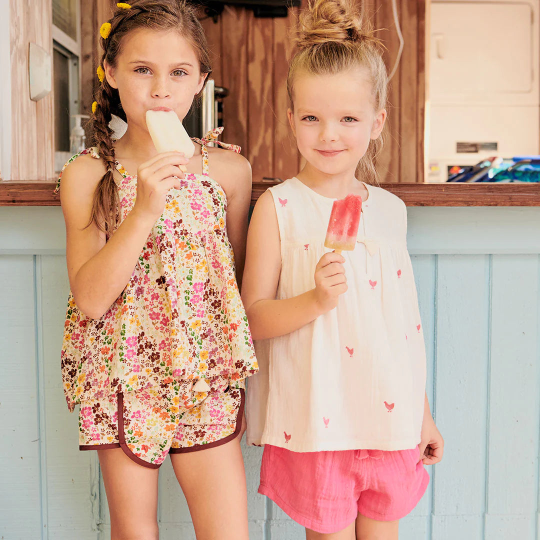 Pink Chicken Girls Organic Theodore Short - Cream Palm Trees