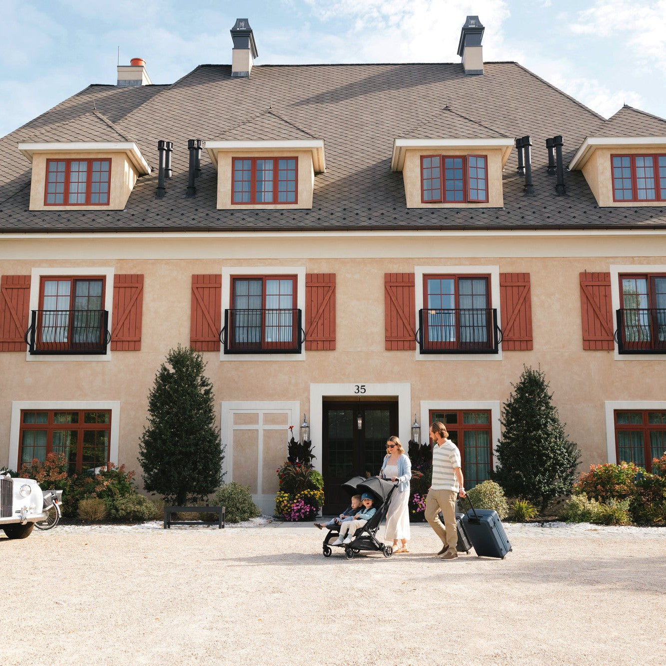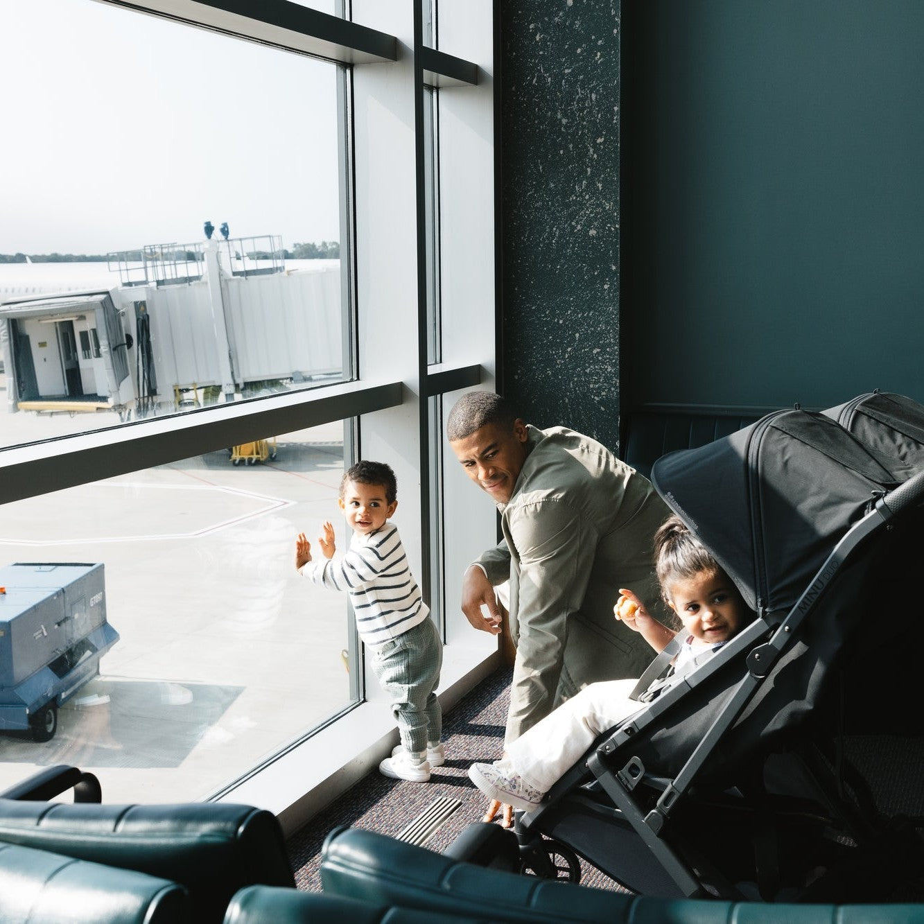 The Minu Duo is a from-birth, side-by-side compact stroller that fits a wide variety of two-child families, from twins to infant and toddler combinations. It’s small enough to fit through a standard doorway and versatile enough to accommodate children up to 50 lbs / 22 kg, so you can travel together as a family with ease.