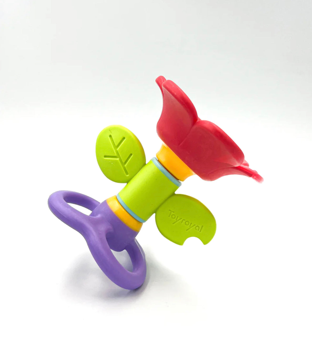 Ideal size for holding with two hands for midline play and spin the green leaves to promote fine motor skills. The Spinning Flower is perfect for sore gums to reduce fussiness and discomfort via multiple sensory points and texture. It is recommended for age 3-month up and perfect for baby shower or newborn gift. The bright and cheerful colors are adorable with shaking sounds to raise body awareness. The Japanese artisan spirit behind the one-piece construction makes it very easy to clean. This product meets or exceeds ASTM and CPSIA safety regulations.