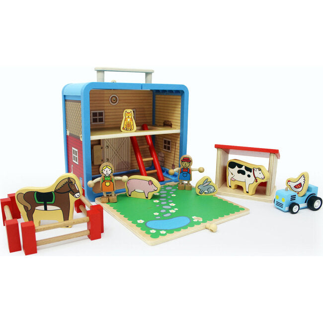 Introducing our new Suitcase Series that allows for portable play. Each suitcase opens up to a world of fun. The 16-piece Barnyard has everything for fun on the go, including farmer kids, fences, farm animals, a tractor, and more!