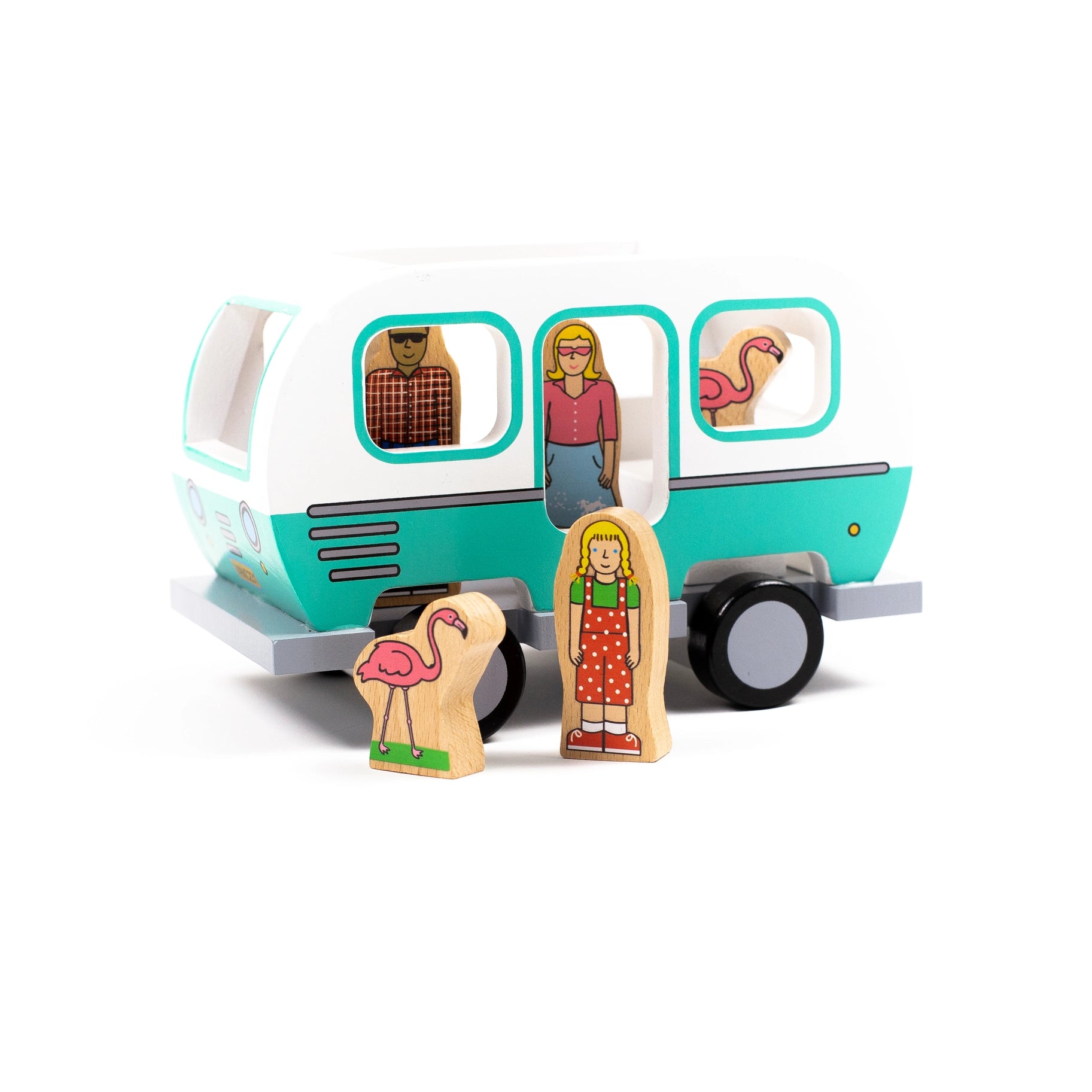 This camper is ready to head out on adventure with the whole family - all with little magnets so they stay put on the go. Chunky figures make for easy play.