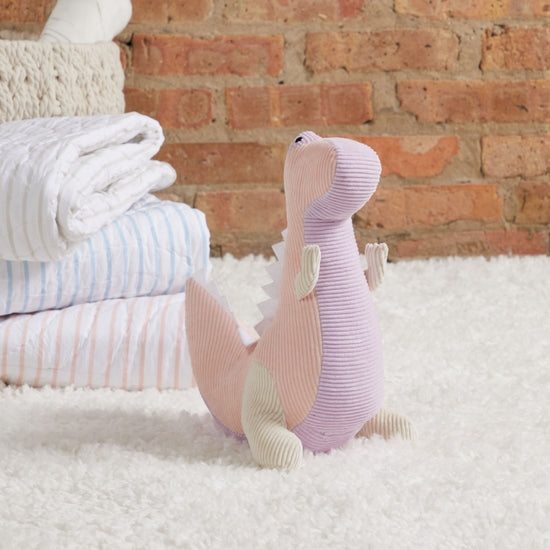 The Lil' Pyar Daisy Dinosaur in Lavender & Pink combines charming design with soft, high-quality materials, making it an ideal companion for young children. Its gentle colors and playful dinosaur shape encourage imaginative play while providing comfort. Crafted with attention to detail, this plush toy supports sensory development and can become a cherished keepsake for your little one.