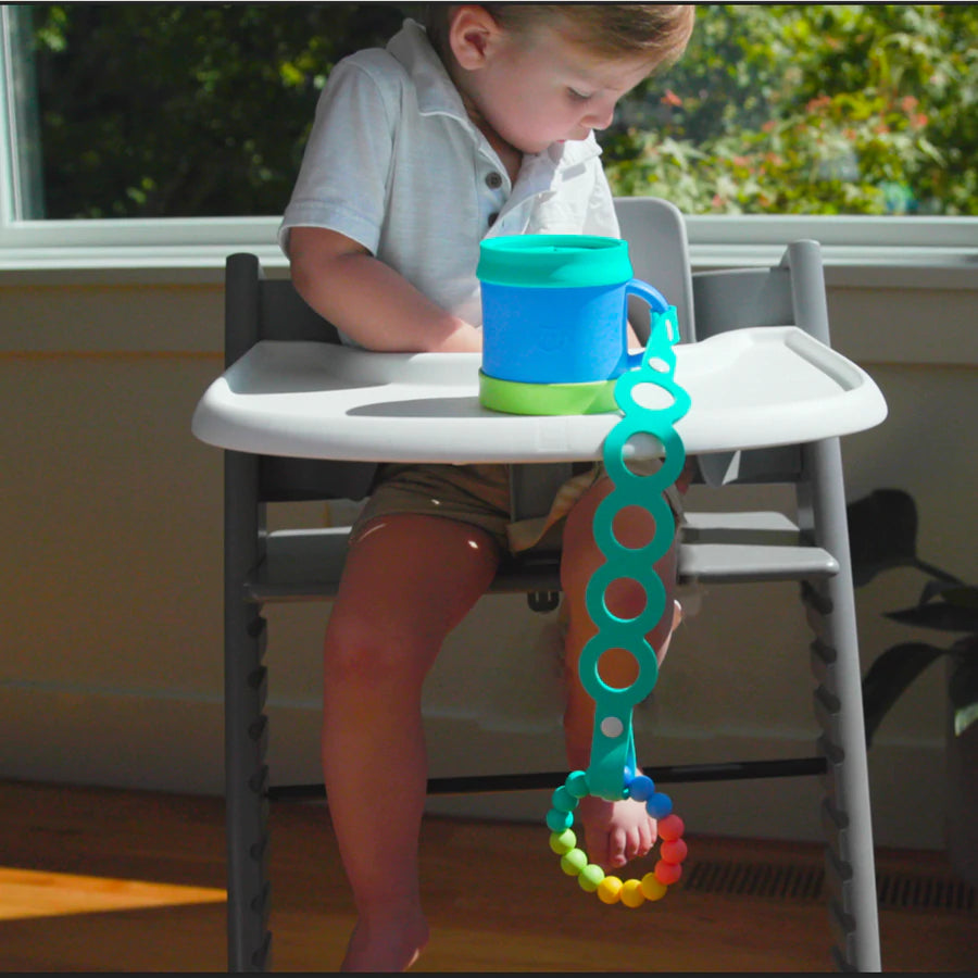 This super stretchable, silicone on-the-go tether is the perfect companion for at home or on-the-go. Attach to a morepeas™ snack cup when suctioned to a surface to keep baby teether (or toy) from dropping on the floor. Or when using a morepeas™ snack cup on-the-go, simply remove the teether (or toy) and attach it to a stroller, car seat, carrier, shopping cart and more!