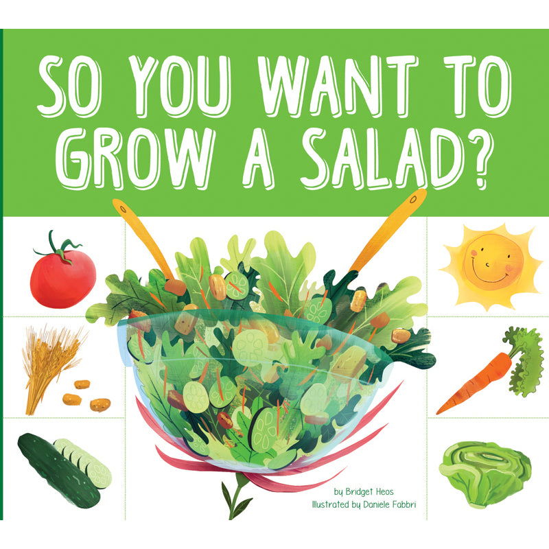 A young girl wants to grow her own salad, learns where the many ingredients come from, and learns how to grow vegetables. Includes kid-friendly salad recipe.