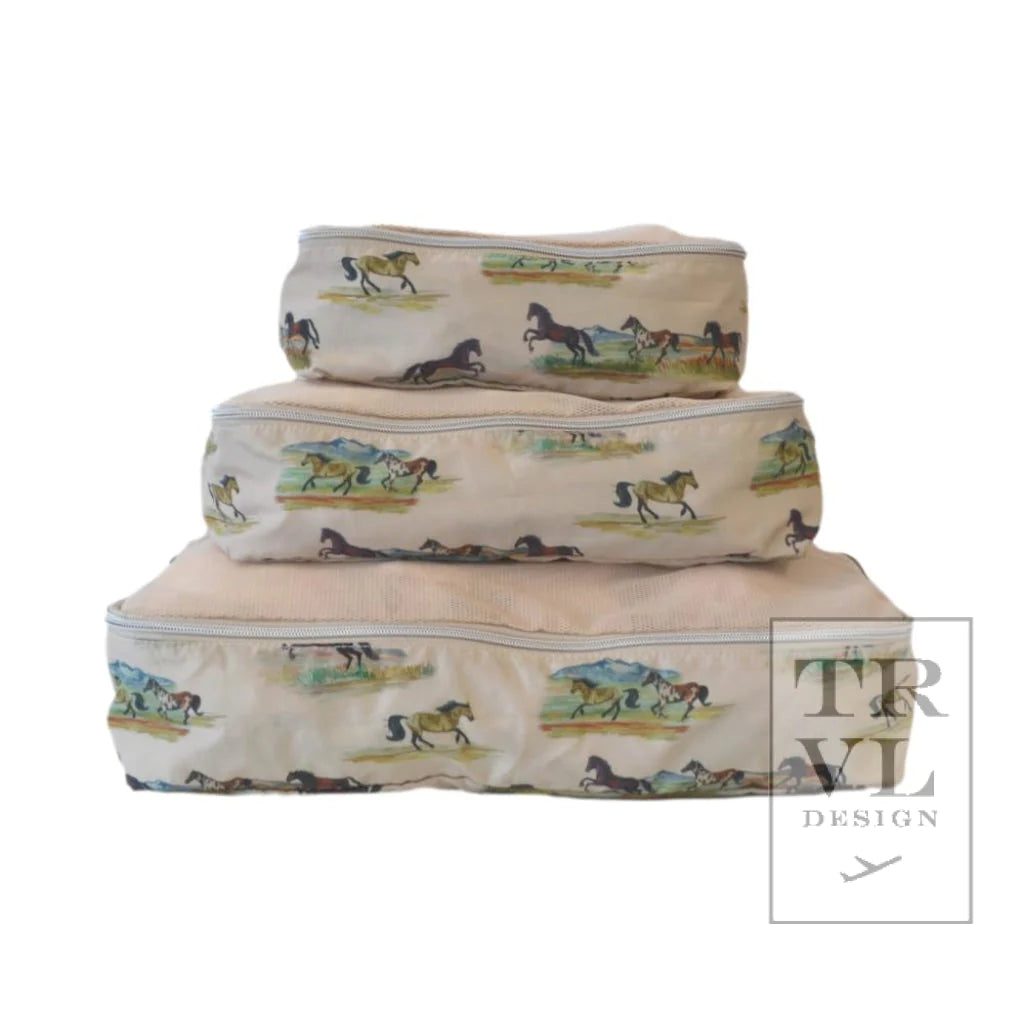 Don't leave home without your Packing Squad - these are a TRVL Game changer!! Imagine how satisfying it is to open your suitcase and know exactly where everything is in our pretty custom printed cubes! Designed in a super lightweight material that will keep your clothes neat and super organized. All 3 cubes comes have a poly mesh top panel and they fit perfectly into your luggage and drawers so you can pack and unpack in a flash!