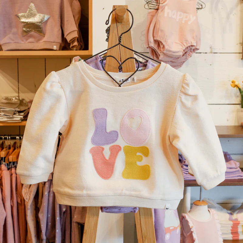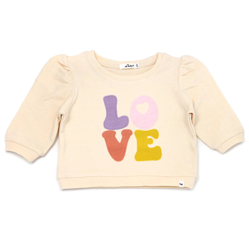 Cotton Terry Puff Sleeve Boxy Sweatshirt-"LOVE" Applique