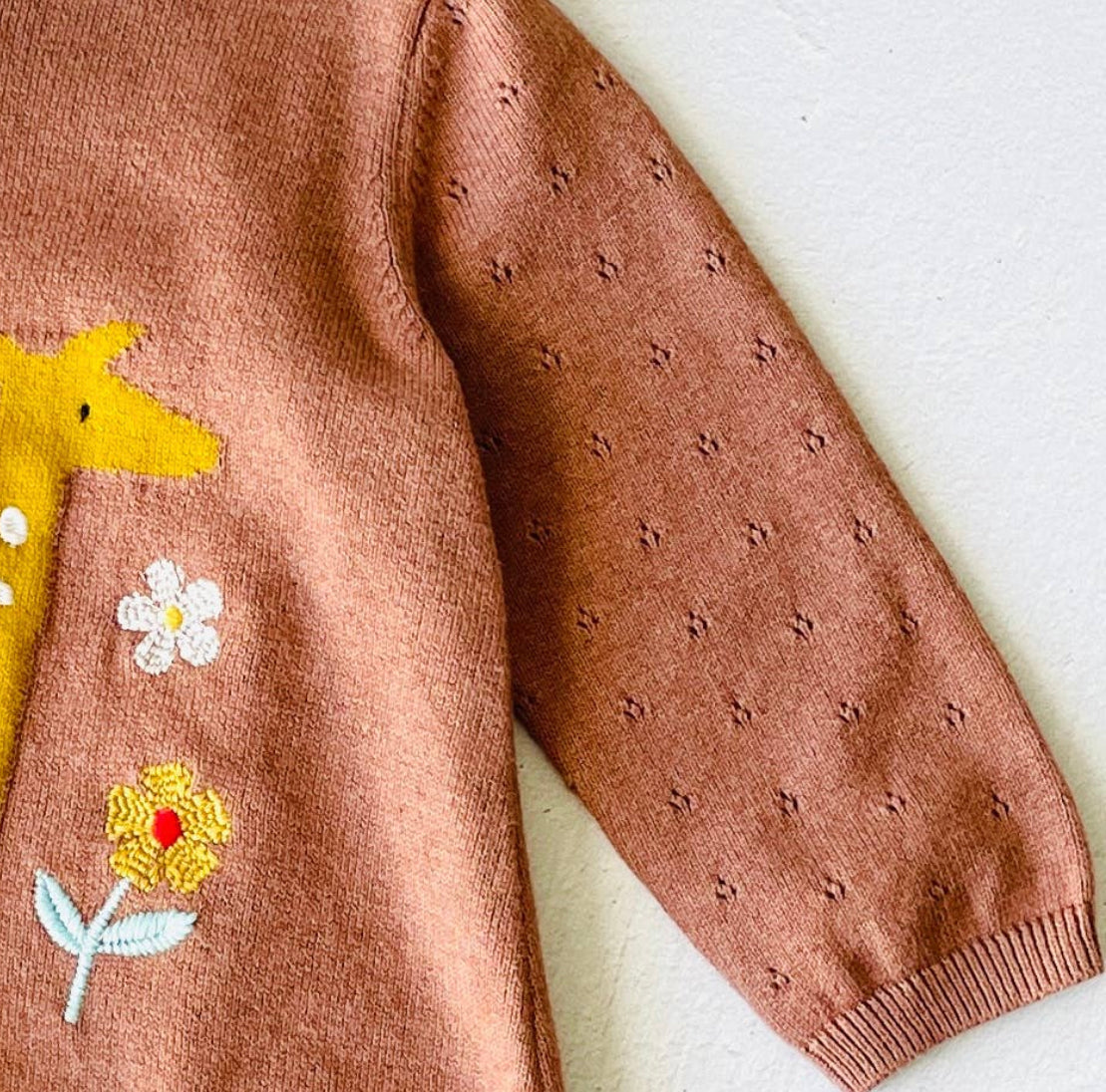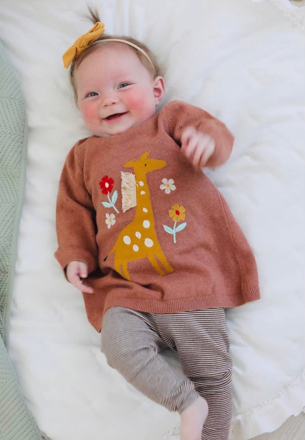 Viverano Floral Giraffe Embroidered Baby Sweater Knit Dress