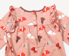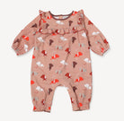 - Ultra-soft organic cotton baby girl romper coverall with ruffle details.