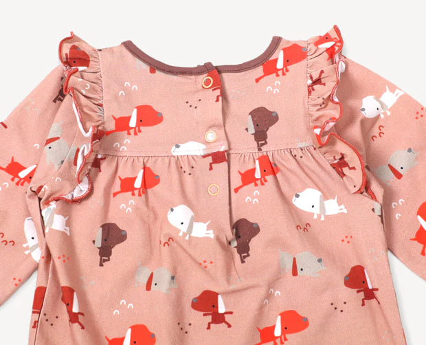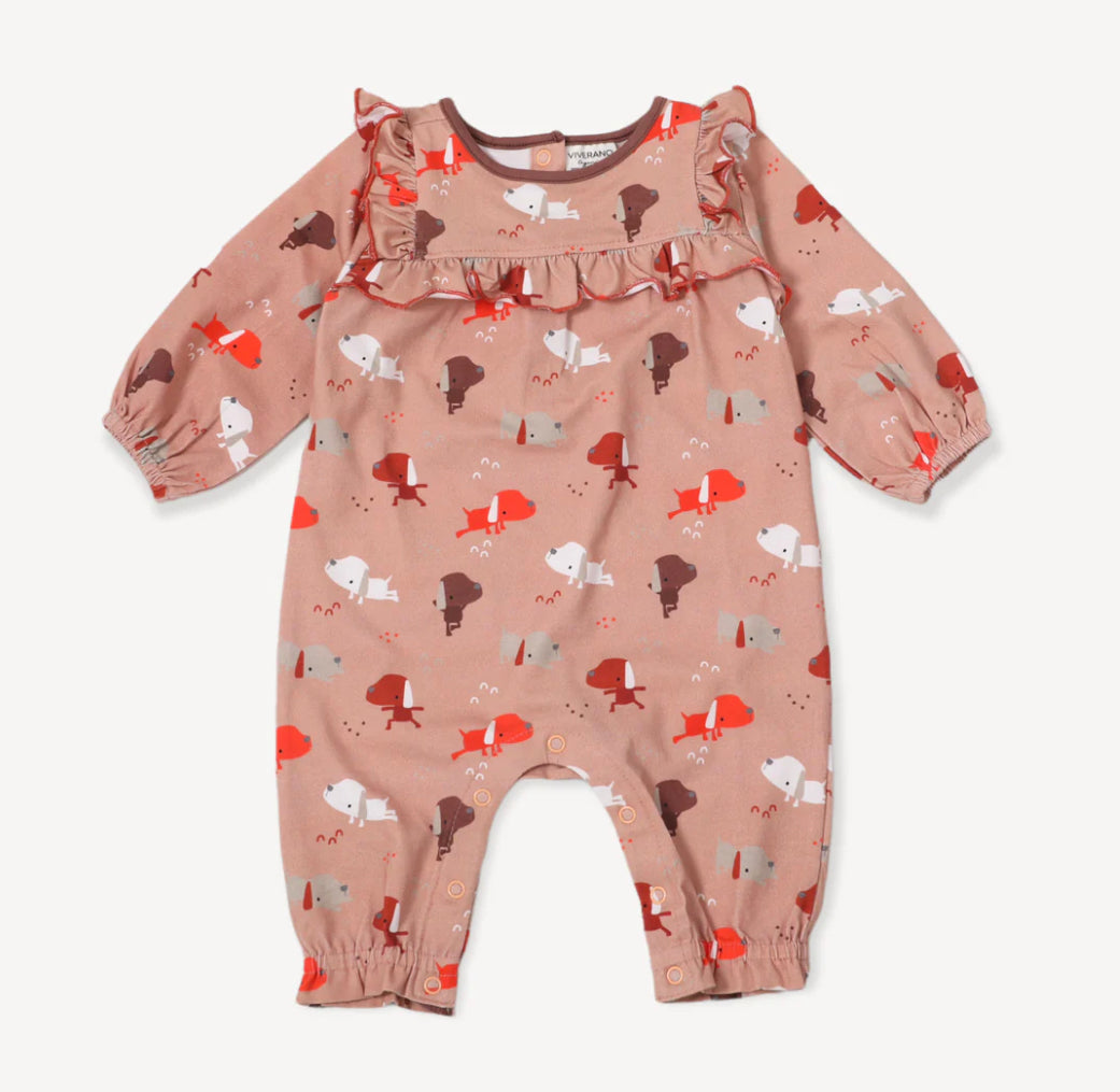 Viverano Organics Yoga Dog Baby Girl Ruffle Jumpsuit