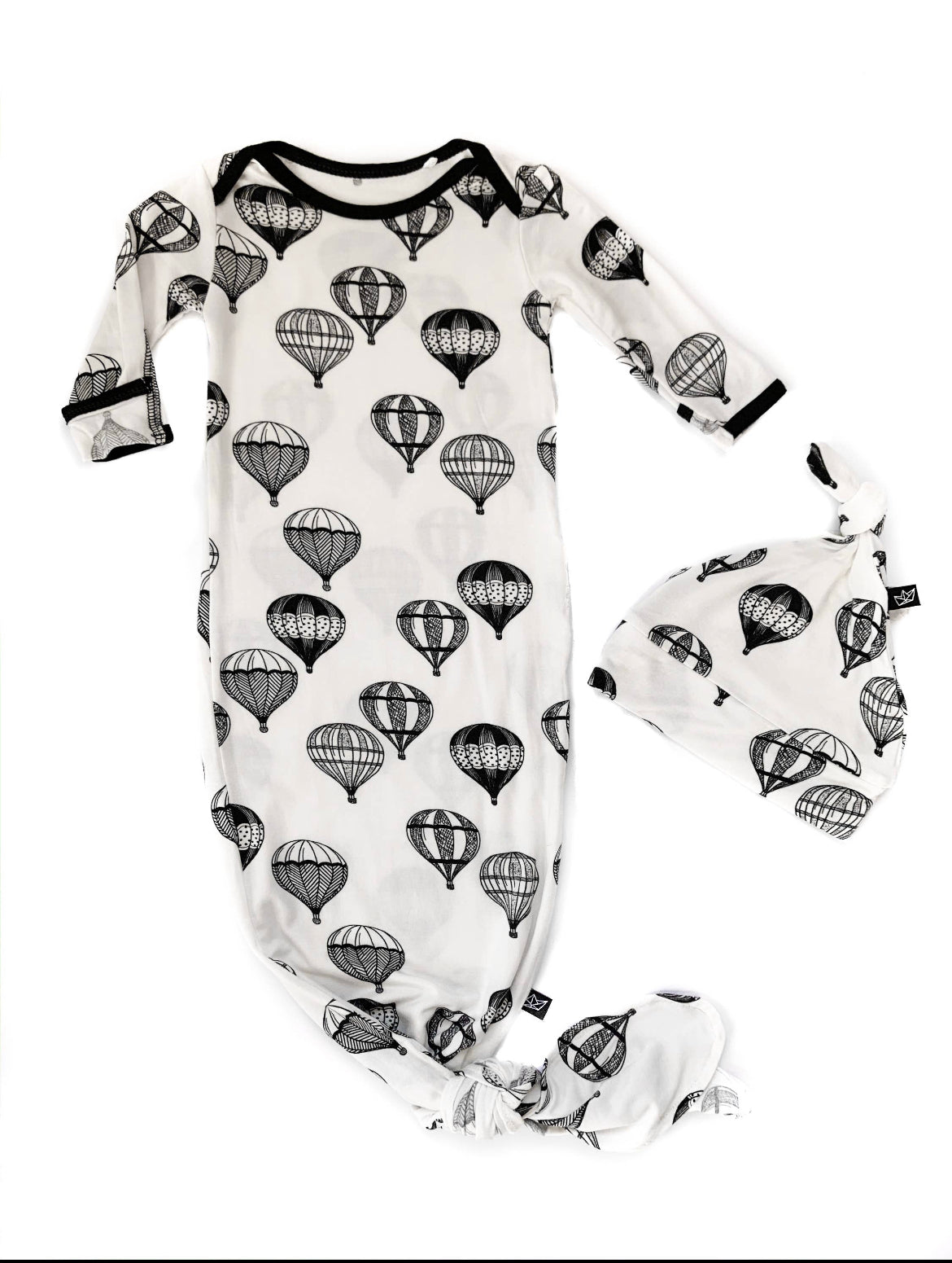 The Hot Air Balloon Knotted Bamboo Newborn Gown & Hat by Peregrine Kidswear.