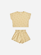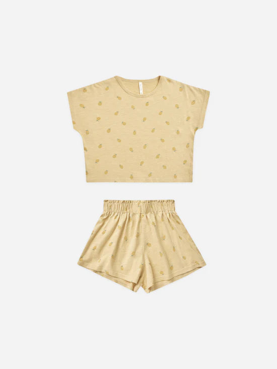 This ultra soft jersey set comes with a short sleeve top, and coordinating shorts with elastic waistline.