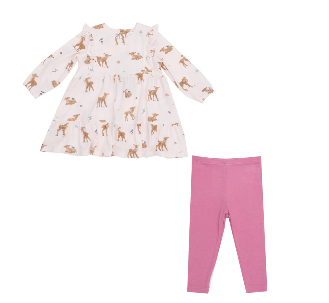 Soft Deer - Smocked Ruffle Dress with Crochet Trim and Ribbed Legging