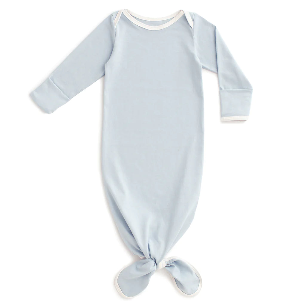 Made from the softest organic cotton, these baby gowns are fundamental to a newborn wardrobe. Lap neck opening for getting over baby's head with ease and a knotted bottom opening for easy diaper changes. These gowns are made to be loved and passed on to siblings and friends to be enjoyed for years to come. Pair with our knotted hat to complete the outfit!