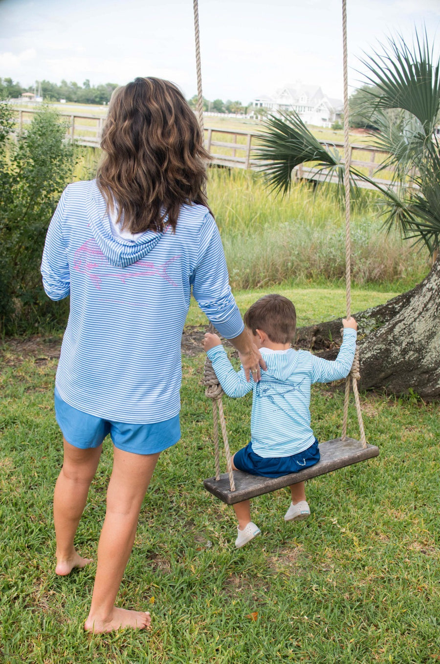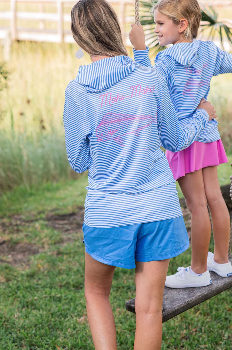 Calling all Mahi Mahi loving ladies! We've got a performance hoodie fishing tee for you! Fabric is UV protective, fast drying, pill resistant, and fade resistant!! Available in adult sizes XS-XL. This style is one of our few from the Mommy and Me Collection so make sure and grab one for yourself and your daughter!