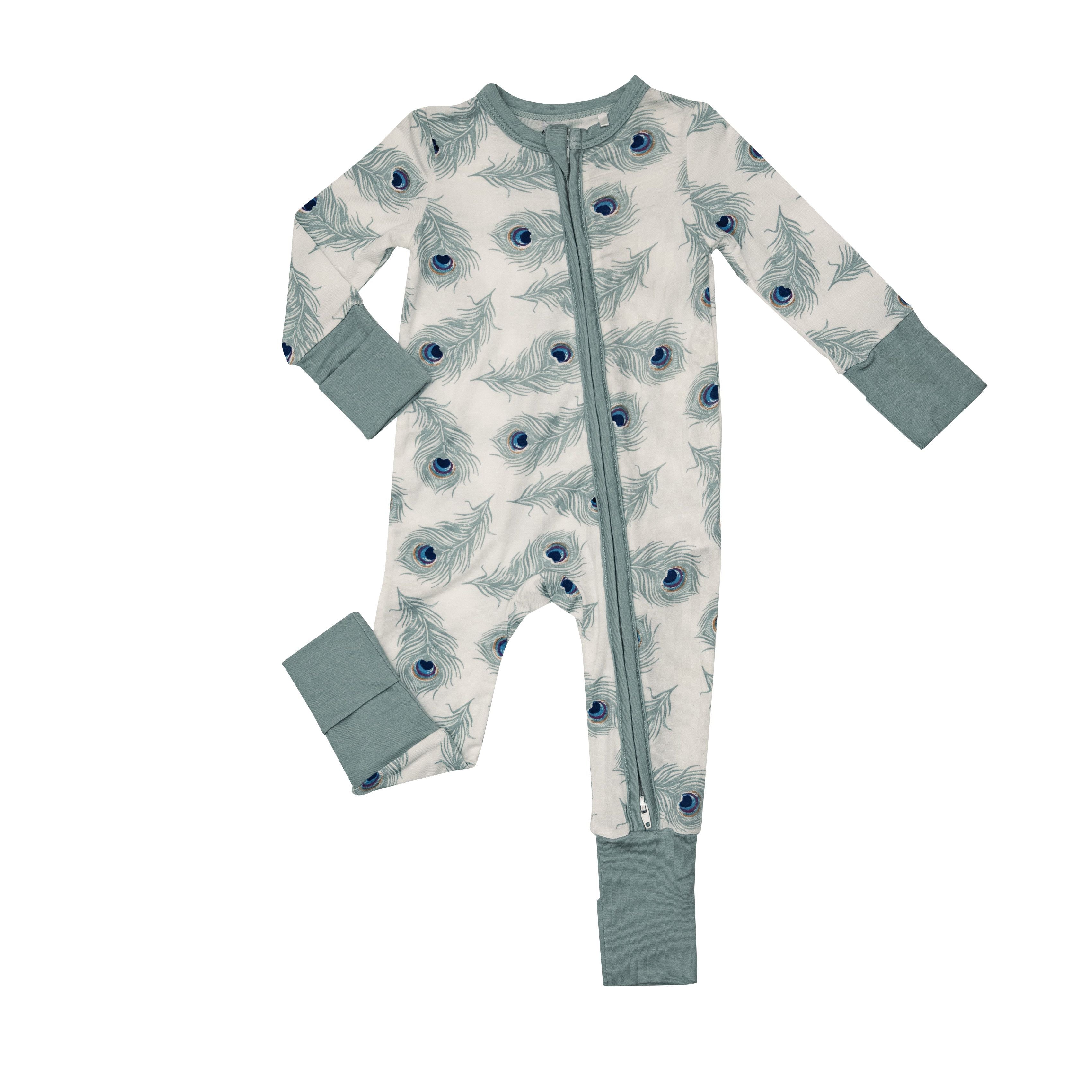 2-Way Zipper Romper Peacock Feathers