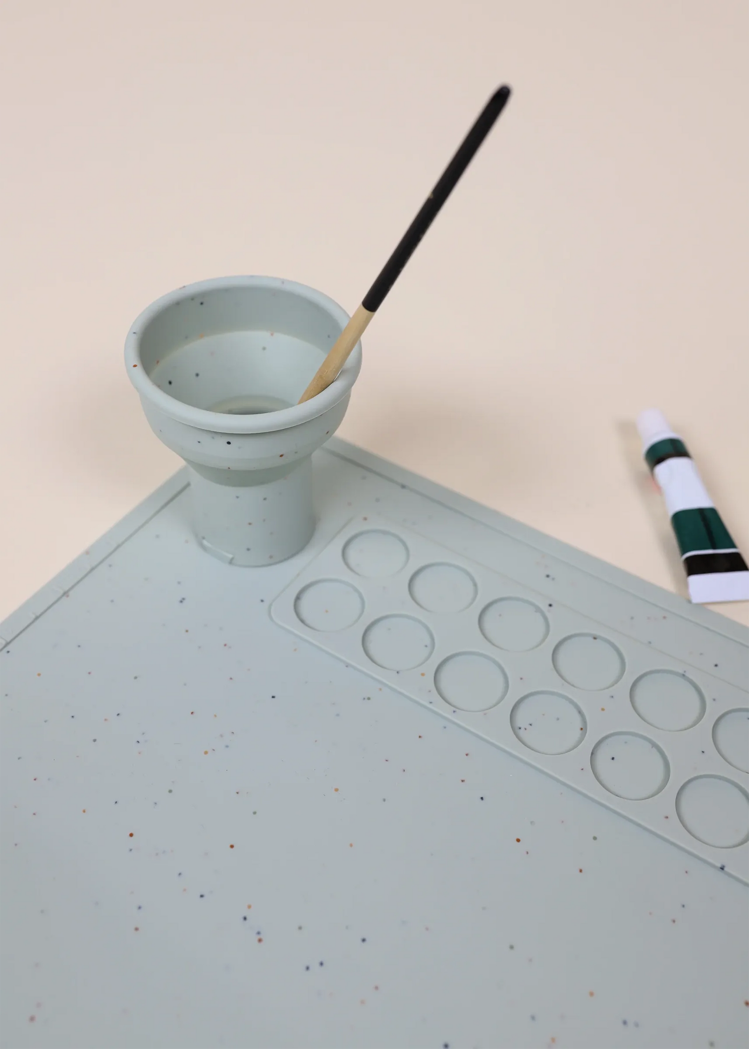 Removable & Collapsible Water Cup: A handy water cup that’s easy to remove and collapse for quick storage. Ideal for rinsing brushes without spills, keeping your little one’s workspace neat and tidy.