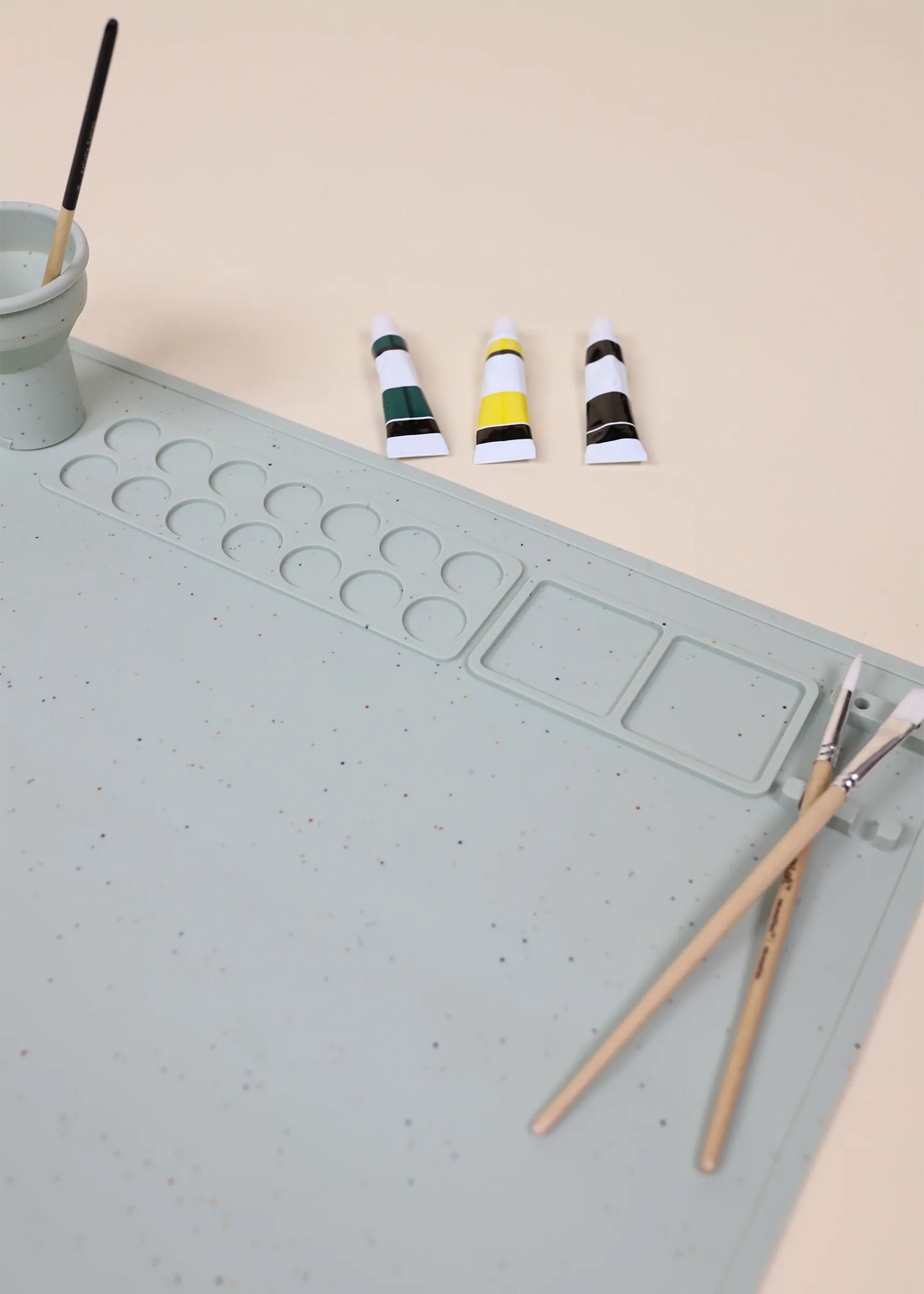 Unleash your child’s inner artist with this all-in-one Silicone Arts & Painting Placemat, designed to keep the creative process mess-free and organized. Perfect for young painters, this versatile placemat provides a smooth, non-slip surface for endless hours of painting fun.