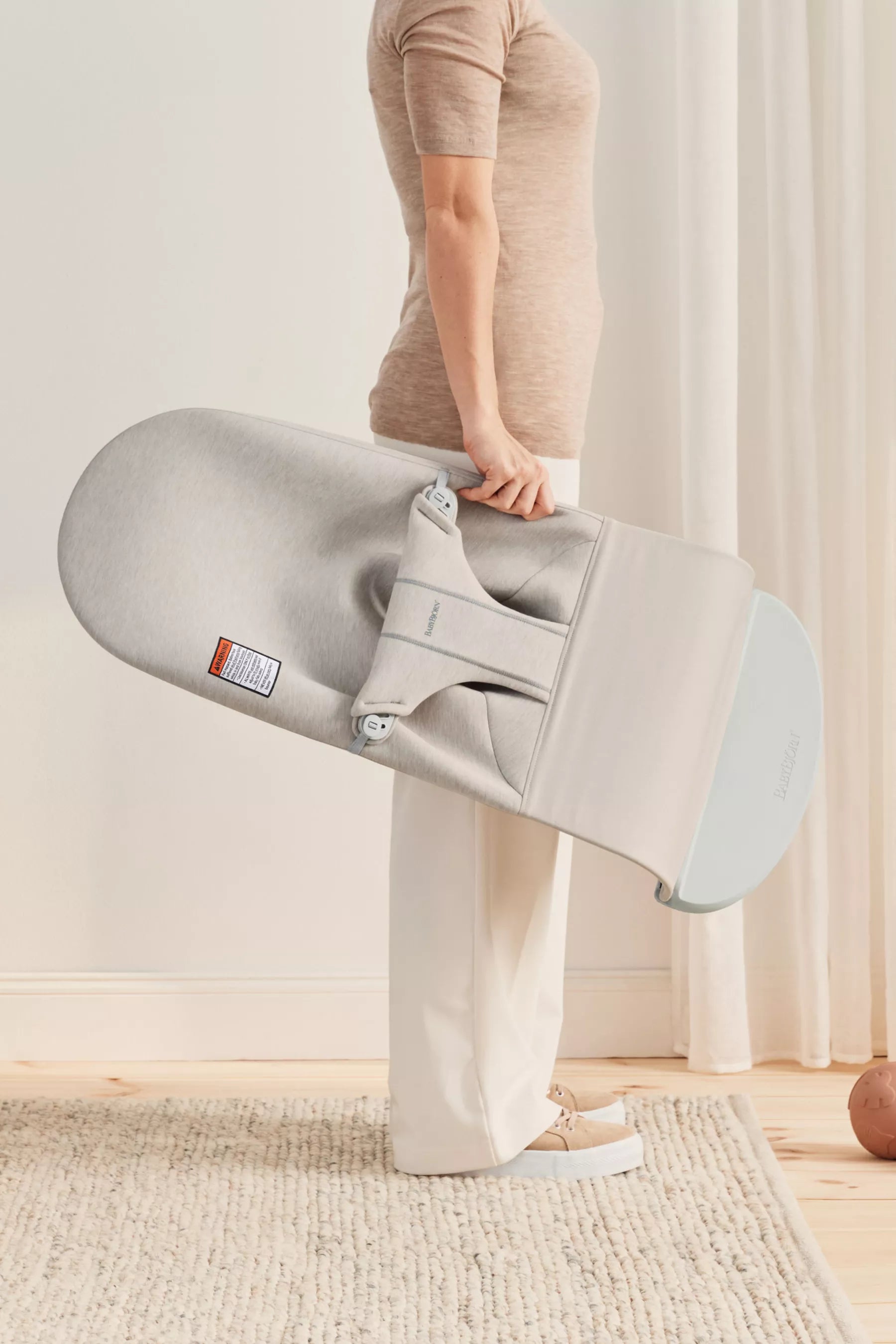 Bouncer Bliss is a lightweight and handy baby bouncer with a gray frame and a fabric seat in super-soft 3D jersey or airy mesh.The differences between our baby bouncers are the color of the frame and the material of the accompanying fabric seat. The fabric seats fit all of our baby bouncers and can be purchased separately, so it’s easy to switch if you want a different color or fabric.