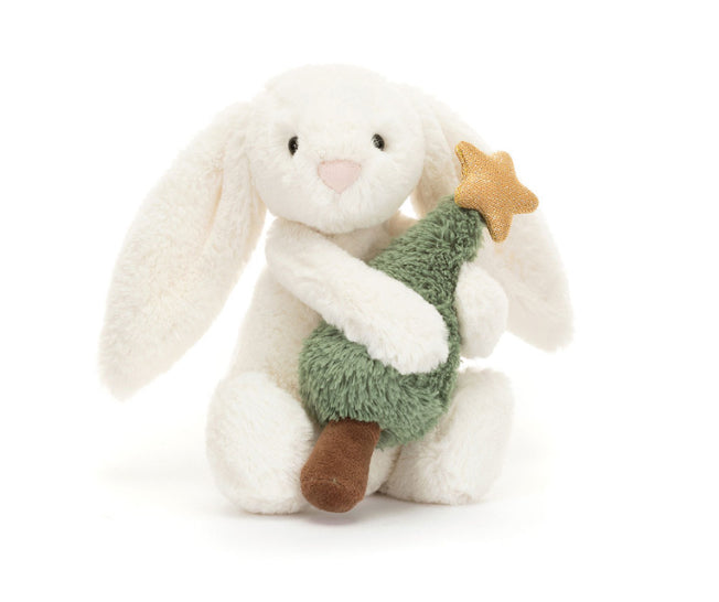 Bashful Bunny With Christmas Tree is on decoration duty! This scrumptious bunny has double-cream fur, snuggly ears and a silky bobtail, as well as a pink suedette nose. They've brought home a tufty evergreen tree with a chunky fur trunk and gold jersey star
