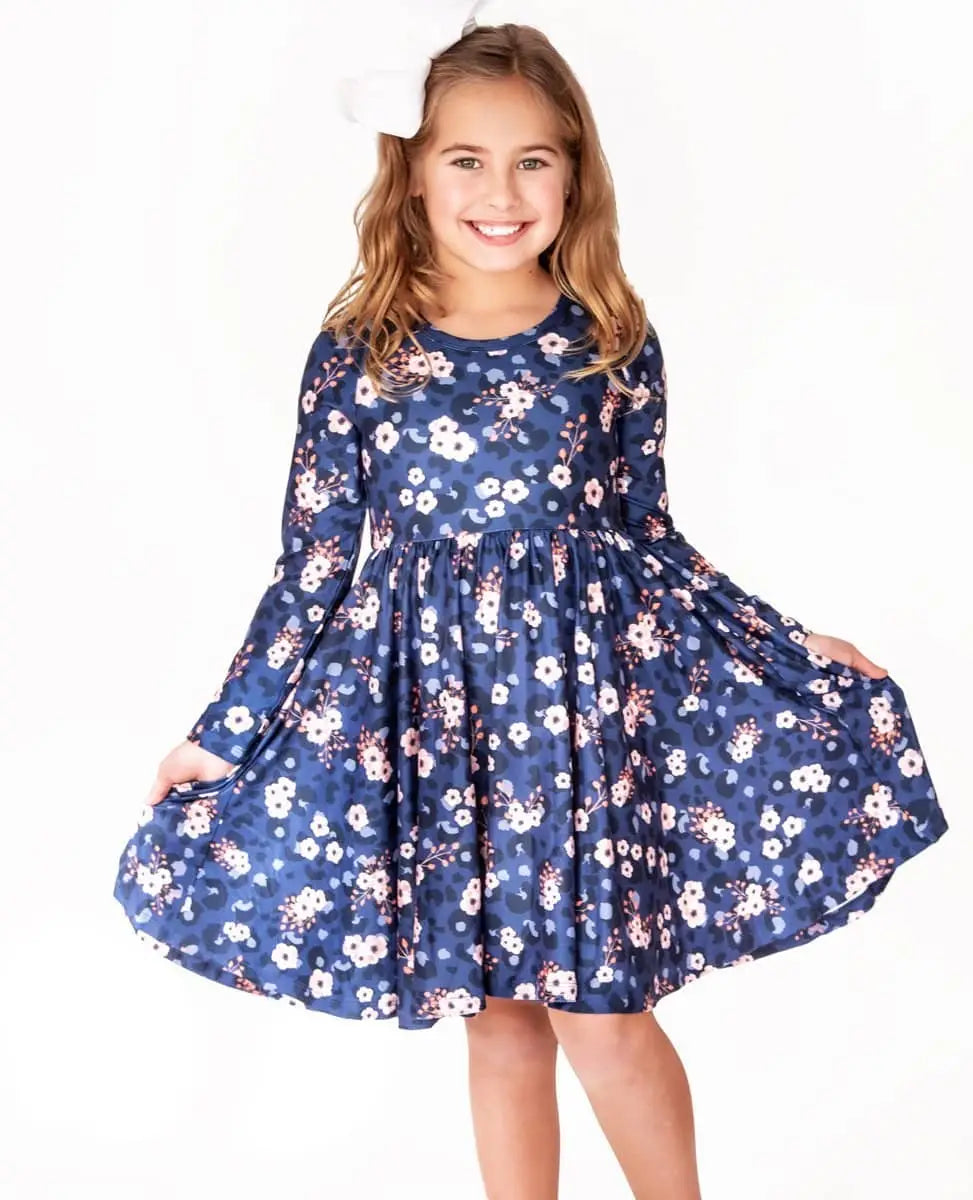 Cherry Blossom - Girls Cloud Soft Hugs Twirl Dress with Pockets